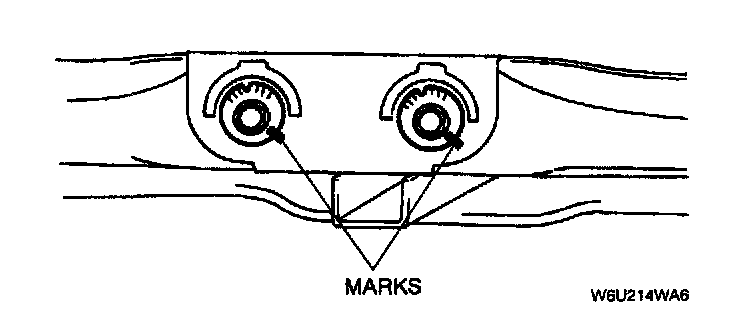2. Align the marks made before removing the adjusting cam bolt. Tighten the nut.