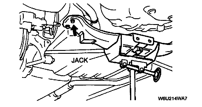 1. Support the rear crossmember by using a jack, then remove the crossmember blots.