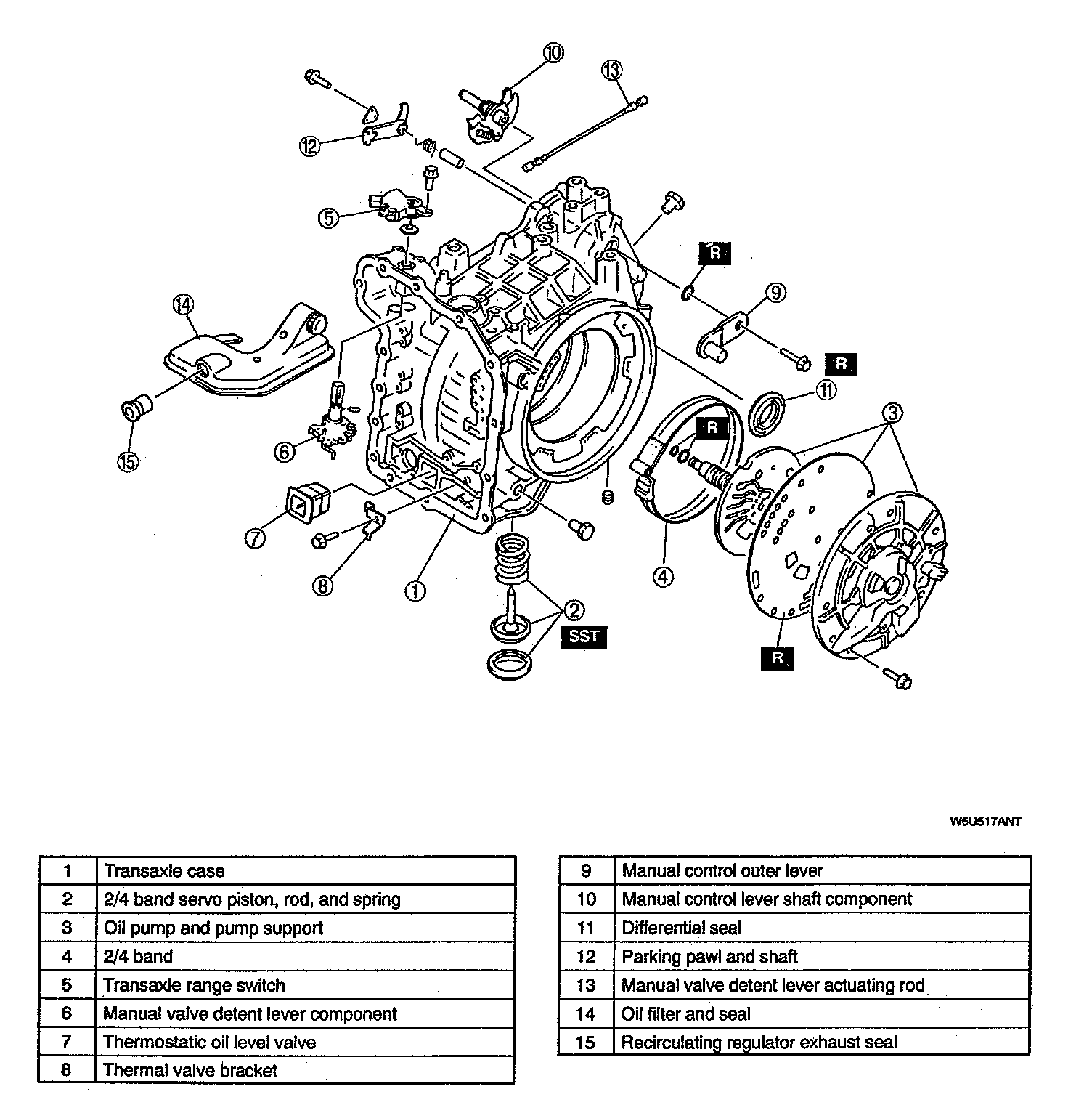 3. Install the SSTs or equivalent on the transaxle case. Position a drain pan under the transaxle.