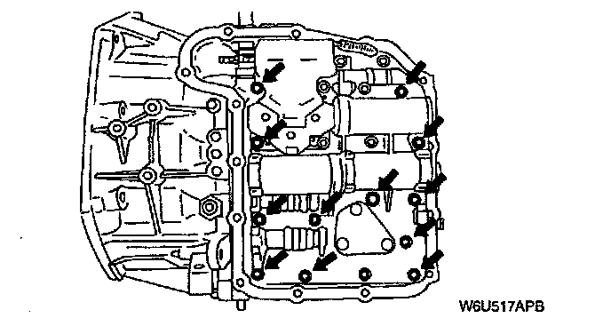 18. Remove the fourteen control valve body cover-to-transaxle case bolts.
