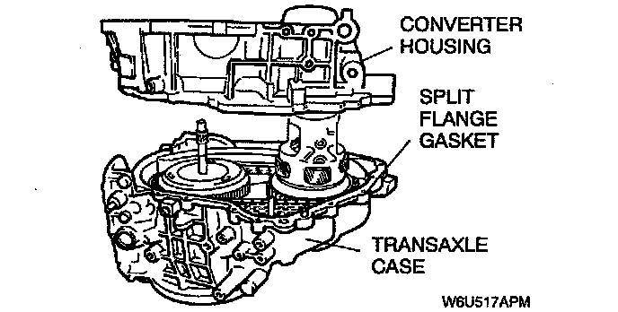 38. Remove the split flange gasket from the converter housing. Discard the split flange gasket.
