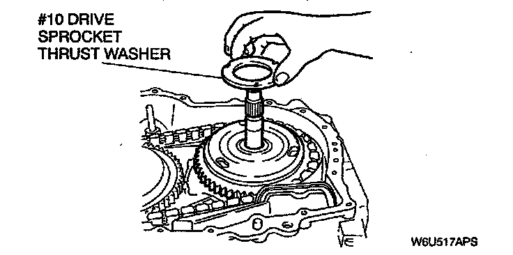 45. Remove the # 10 drive sprocket thrust washer (selective fit) from the drive sprocket.