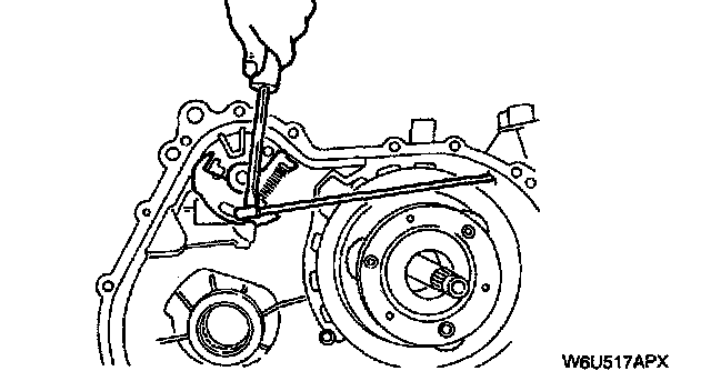 48. Remove the rear part of the chain cover (with the magnet attached) from the transaxle case. Check the magnet for excessive metal particles.