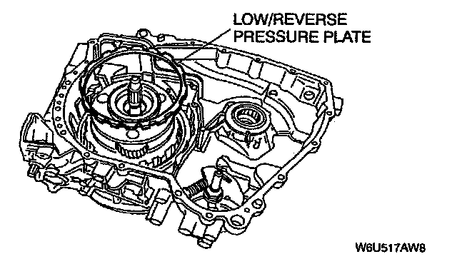 59. Install the low one-way clutch retaining ring. Position the retaining ring ends in an area near the case lugs.