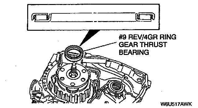 72. Install the # 9 reverse/fourth gear thrust bearing.