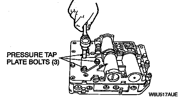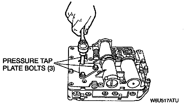 3. Remove the three pressure tap plate bolts. Remove the pressure tap plate.