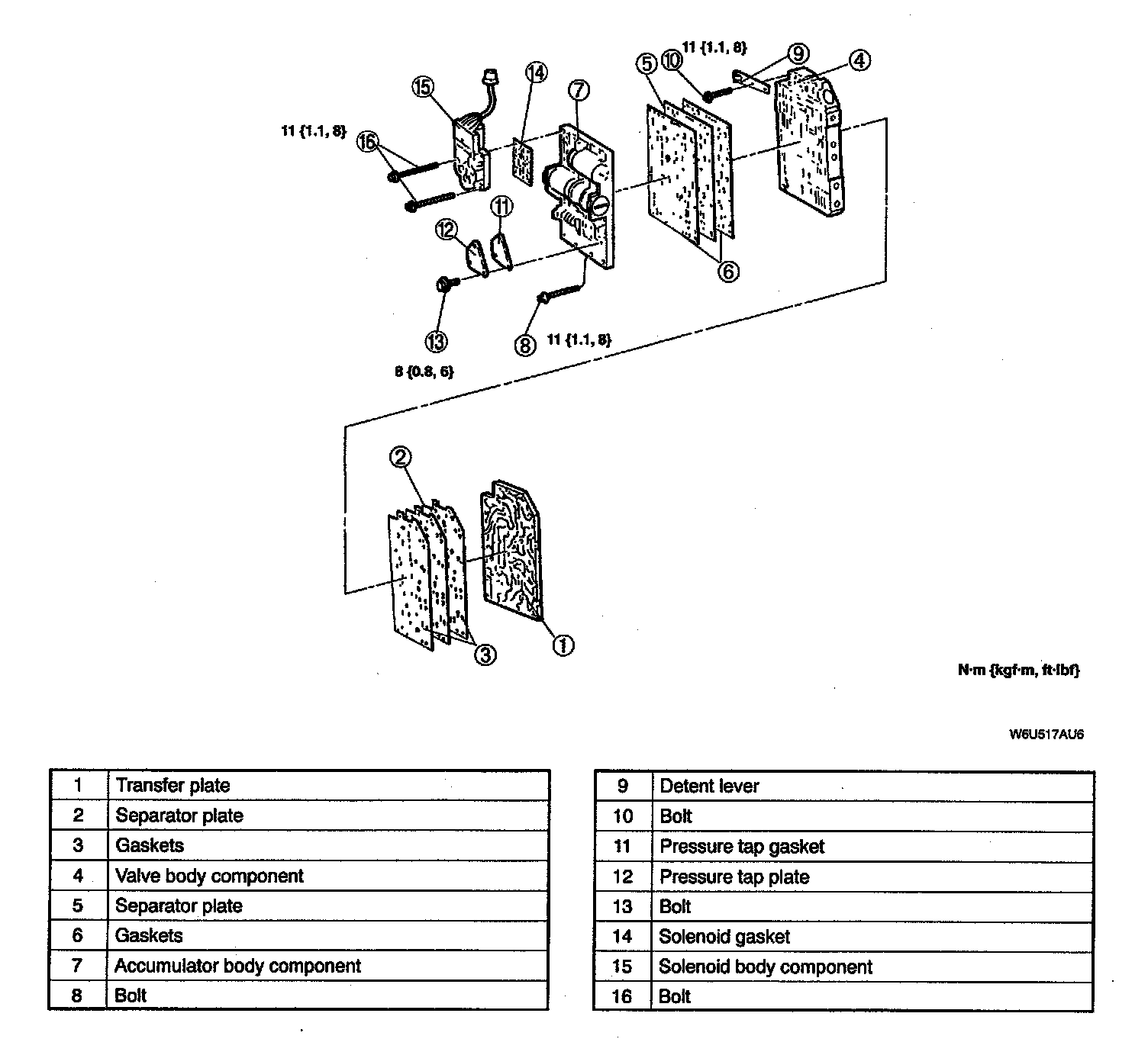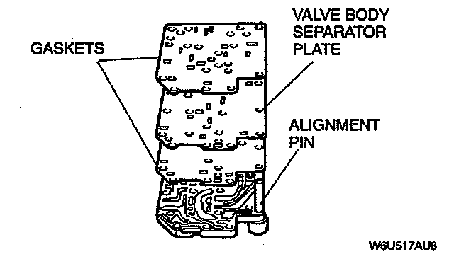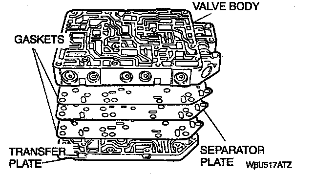 8. Remove the valve body, separator plate and gaskets from the transfer plate. Discard the gaskets.
