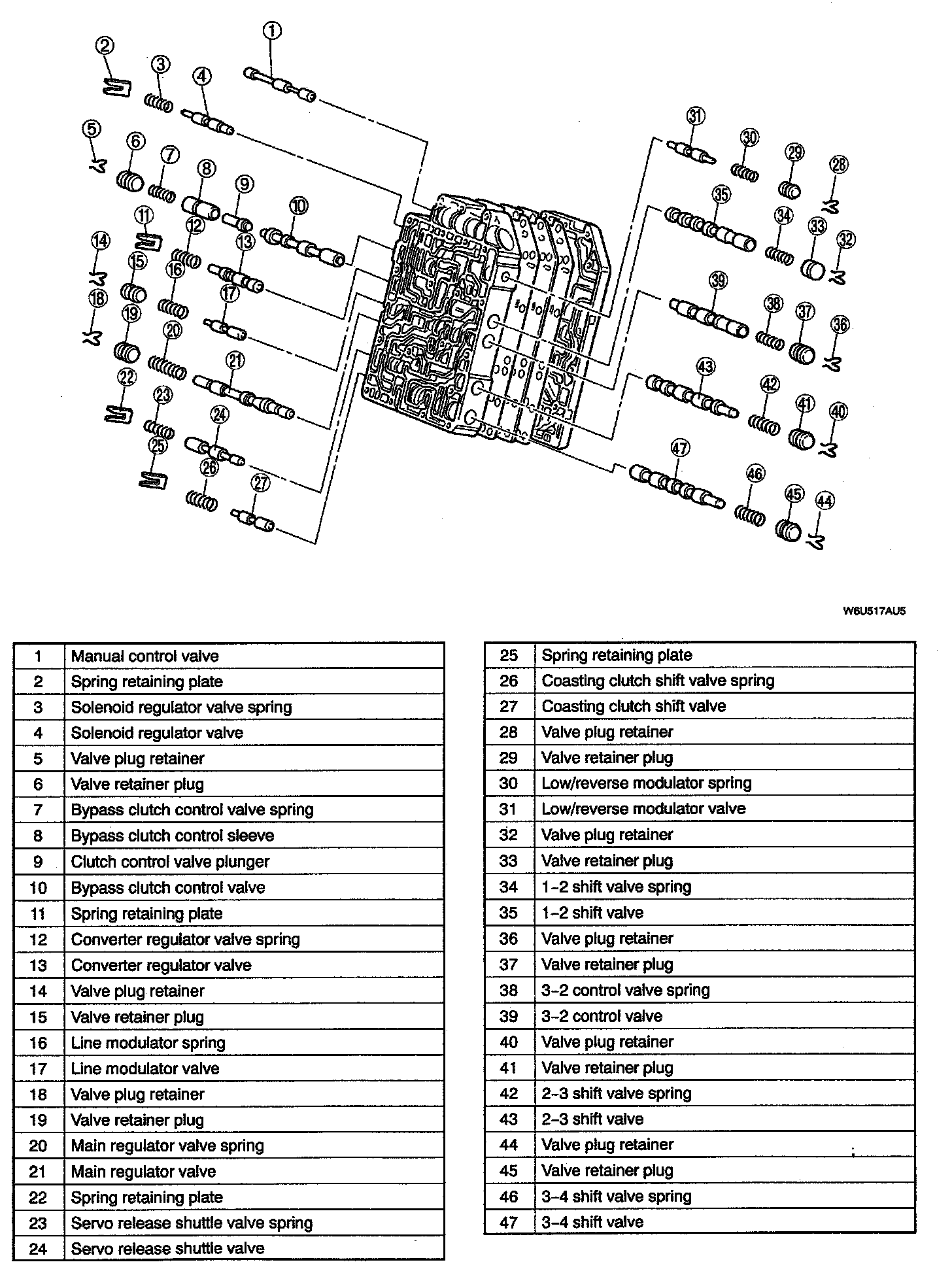 - Denting or scratching these components will reduce the ability of the transaxle to the shift properly. When handling these components or the valve body that contains them, be careful not to drop or hit them.