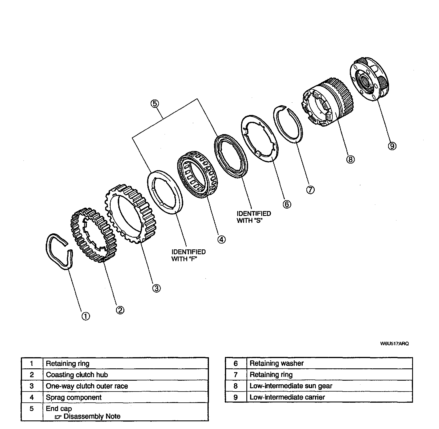FORWARD ONE-WAY CLUTCH, LOW-INTERMEDIATE SUN GEAR COMPONENT, AND LOW-INTERMEDIATE CARRIER COMPONENT DISASSEMBLY/ASSEMBLY1. Disassemble in the order indicated in the table.