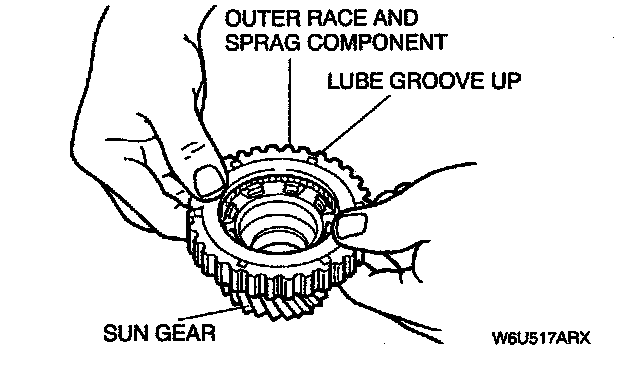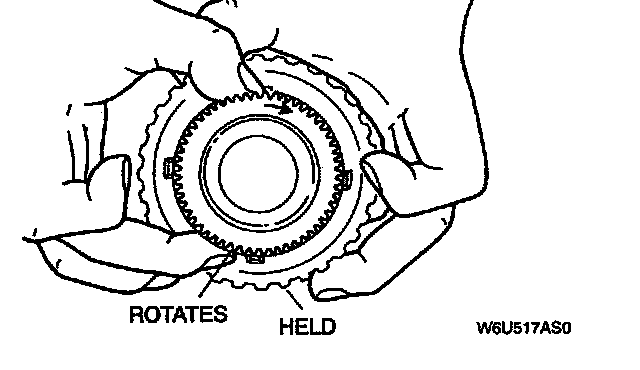 9. Check the operation of the forward one-way clutch with the sun gear facing up. It should work as follows: