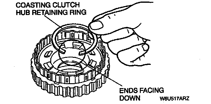 - The end of the retaining ring should point towards the coasting clutch hub.