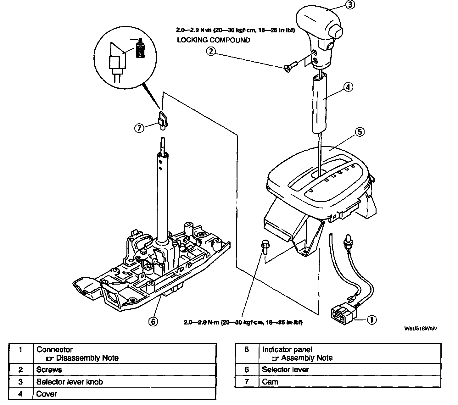 Selector Lever Disassembly / Assembly1. Disassemble in the order indicated in the table.