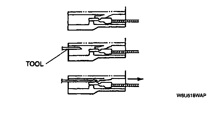 1. Insert a tool from the terminal side of the connector, and lift up the terminal locking tab.