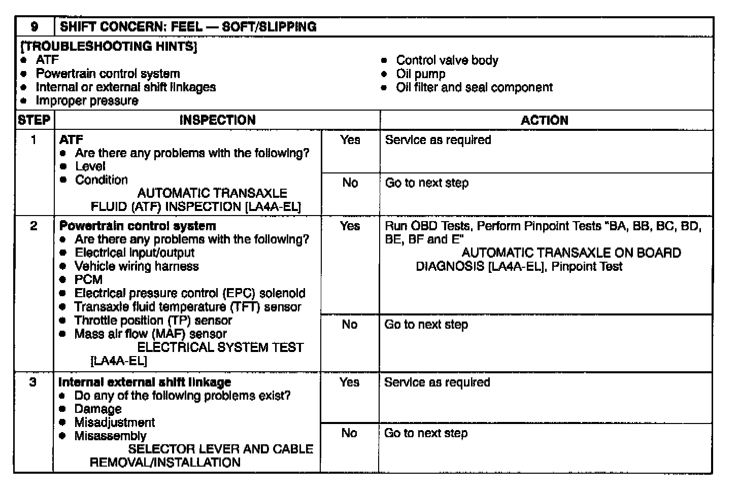 9: Shift Concern: Feel: Soft/Slipping