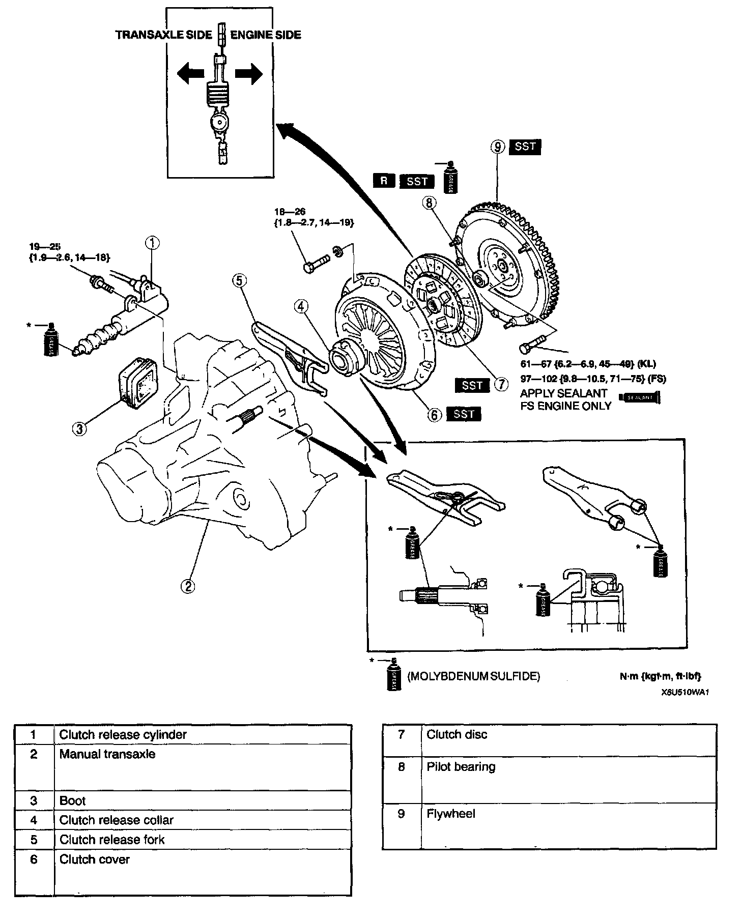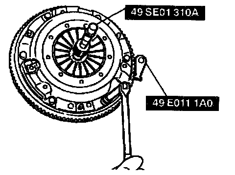 - Hold the clutch disc position by using the SST.