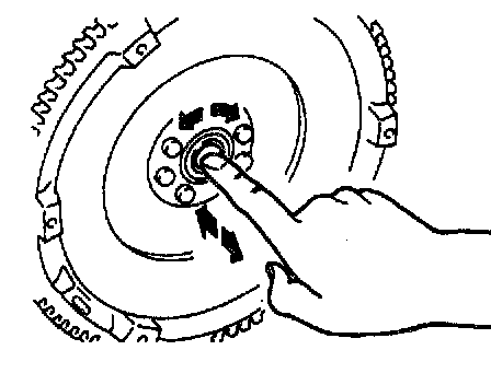 1. Without removing the pilot bearing from the flywheel, turn the bearing while applying force in the axial direction.