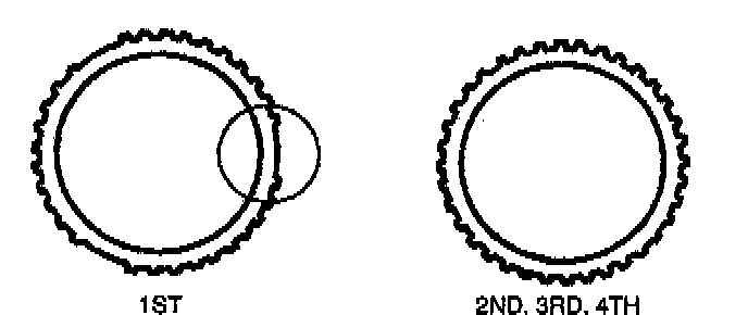 - The 1st synchronizer ring has teeth missing at three places around its outer edge to help distinguish it from the other synchronizer rings.