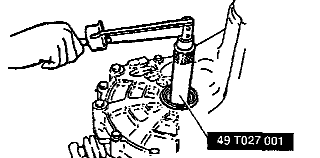 2. Turn the SST (49 T027 001) with a torque wrench. Adjust the SST (49 G030 381) with the SST (49 F401 385) until the specified preload is obtained.