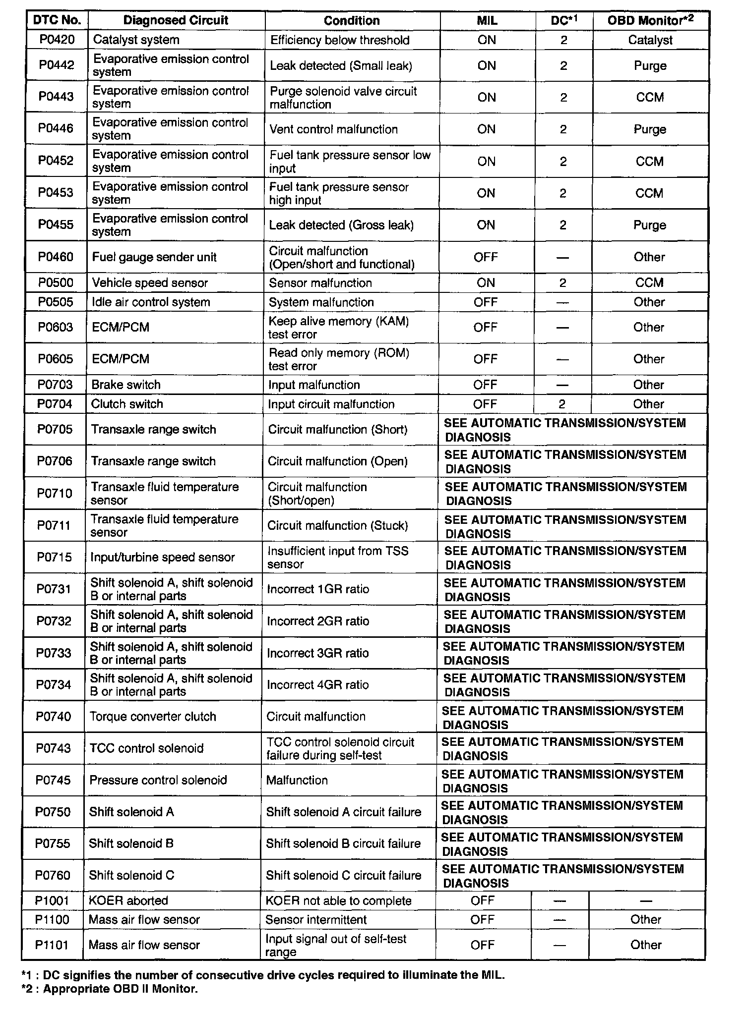 A L L Diagnostic Trouble Codes ( DTC )