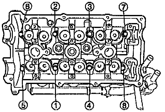 Tighten the bolts in two or three steps in the order shown.