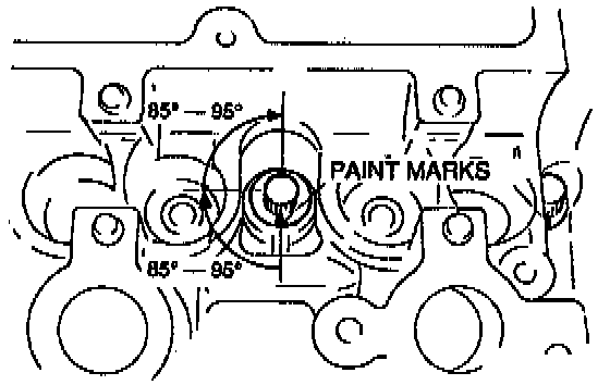 Using the marks as a reference, tighten the bolts by turning each 85° - 95° in the sequence shown.