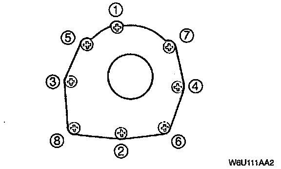 - Install the oil pump cover and tighten the bolts in the order shown.