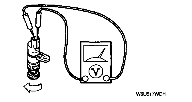 2. Measure the voltage between terminals of the vehicle speedometer sensor while rotating the driven gear.