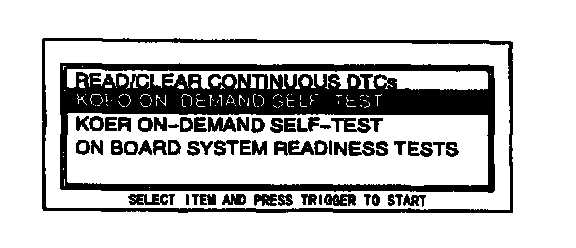 3. Move the cursor to KOEO ON-DEMAND SELF-TEST. Press the trigger key to enter this selection.