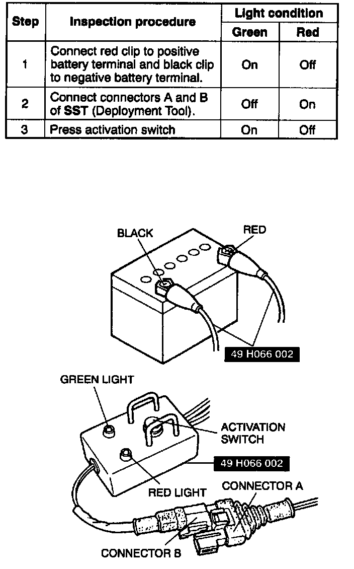 If not as specified, do not use the SST (Deployment tool) because it may cause the air bag module to unexpectedly deploy upon connection to the air bag module.