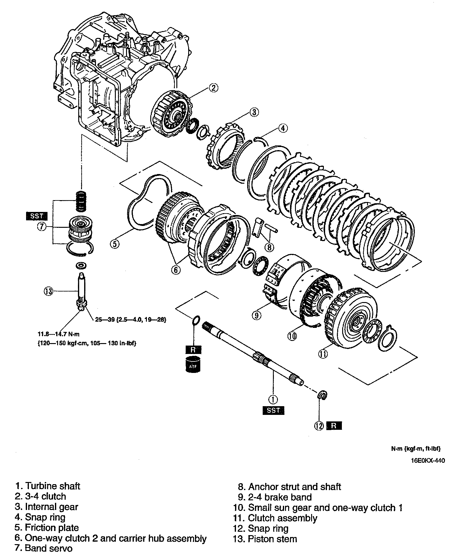 2. If the drive plates or 2-4 brake band are replaced with new ones, soak the new part in ATF for at least two hours before installation.