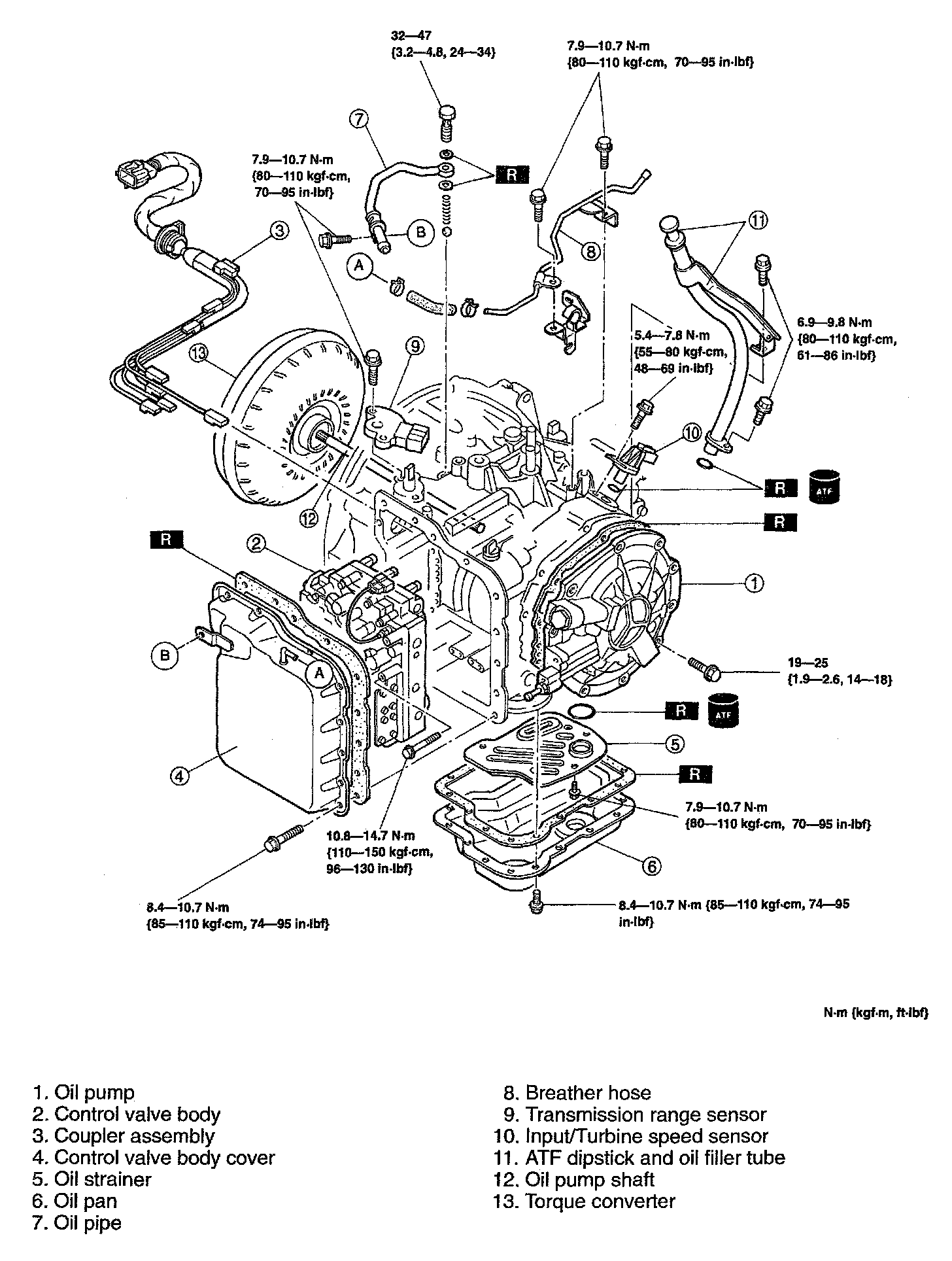 3. Before assembly, apply ATF to all seal rings, rotating parts, O-rings, and sliding parts.