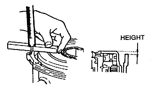 31. Measure the height difference between the reverse and forward drum and the transaxle case. If the height is not within specification, reassemble beginning with step 22.