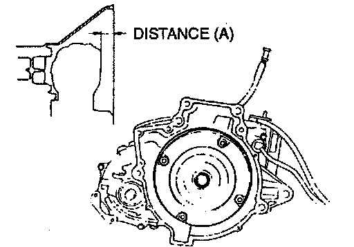 54. To ensure that the torque converter is installed accurately, measure distance A between the end of the torque converter and the face of the converter housing.