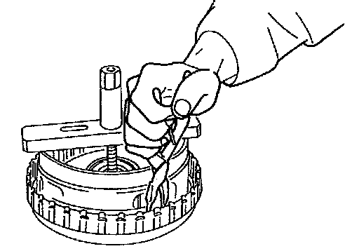 5. Measure the clearance between the retaining plate and the snap ring. Make several measurements and calculate the average value. If the clearance is not within specification, adjust it by selecting a proper snap ring from below.