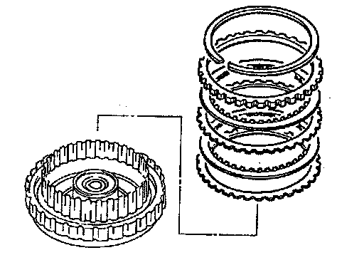 1. Remove the snap ring, retaining plate, drive plates, driven plates and dished plate of the forward clutch.