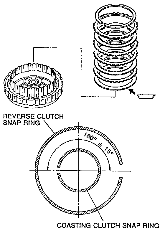 11. Install the coasting clutch snap ring in the direction shown in the figure.
