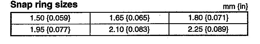 2. If the clearance is not within specification, adjust it by selecting a proper snap ring from below.