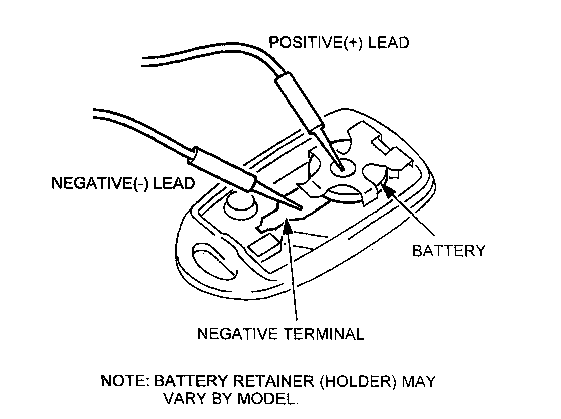 ^ If voltage is greater than 2.7 V, and keyless entry system still does not operate, the transmitter may be malfunctioning and will require the following inspection: