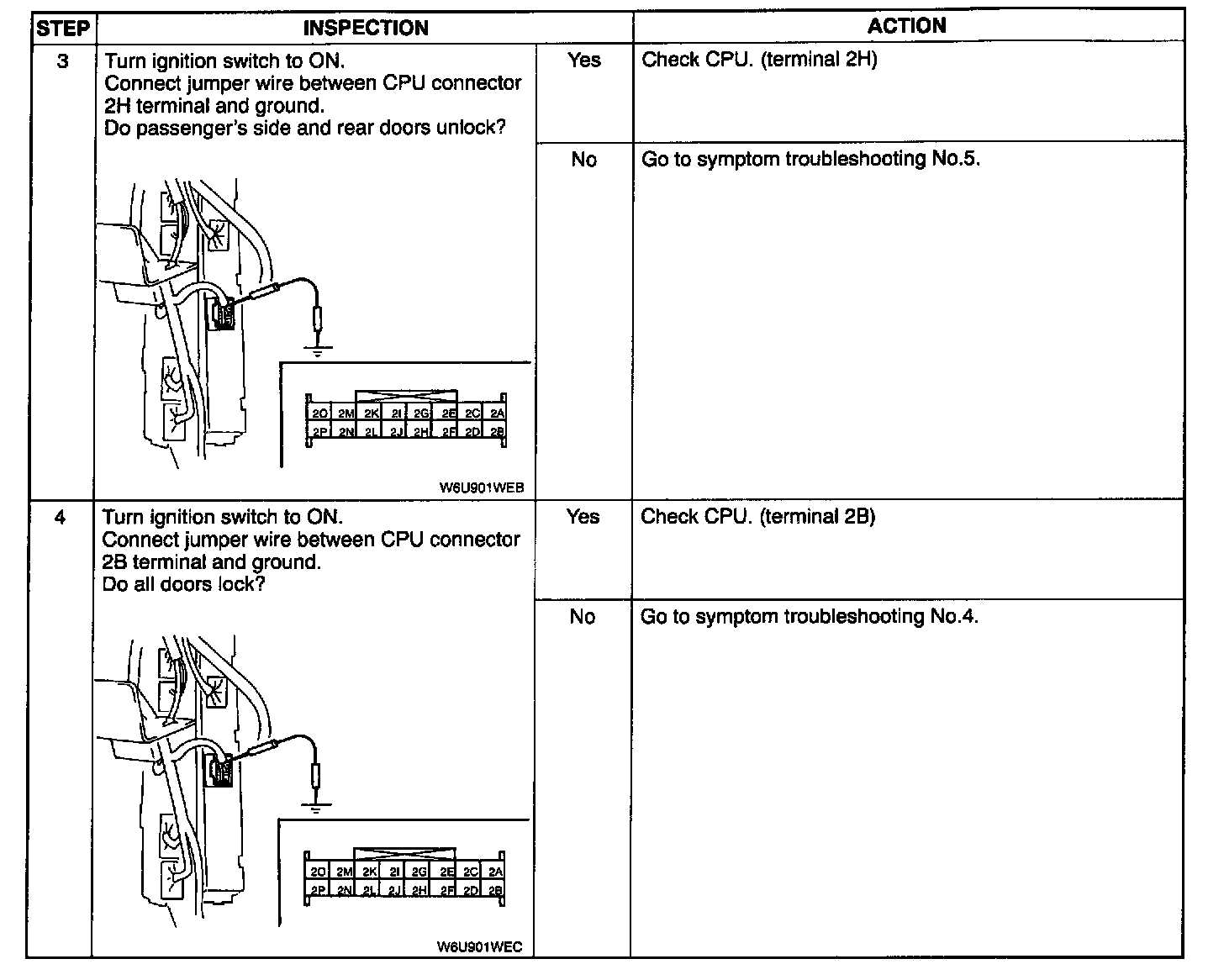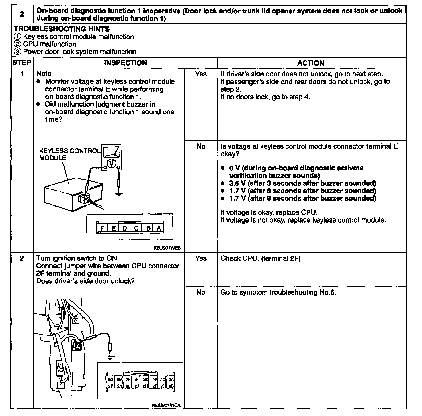 2. Door Lock and/or Trunk Opener INOP During OBD Function 1