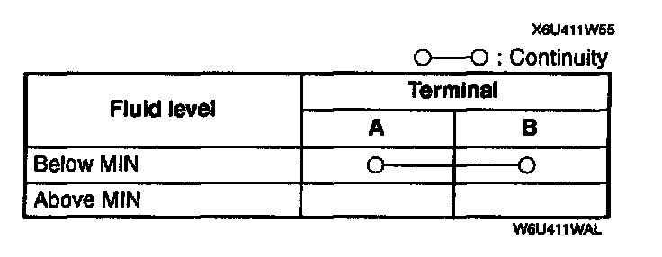 3. Starting with the fluid level above MIN, verify that there is no continuity.