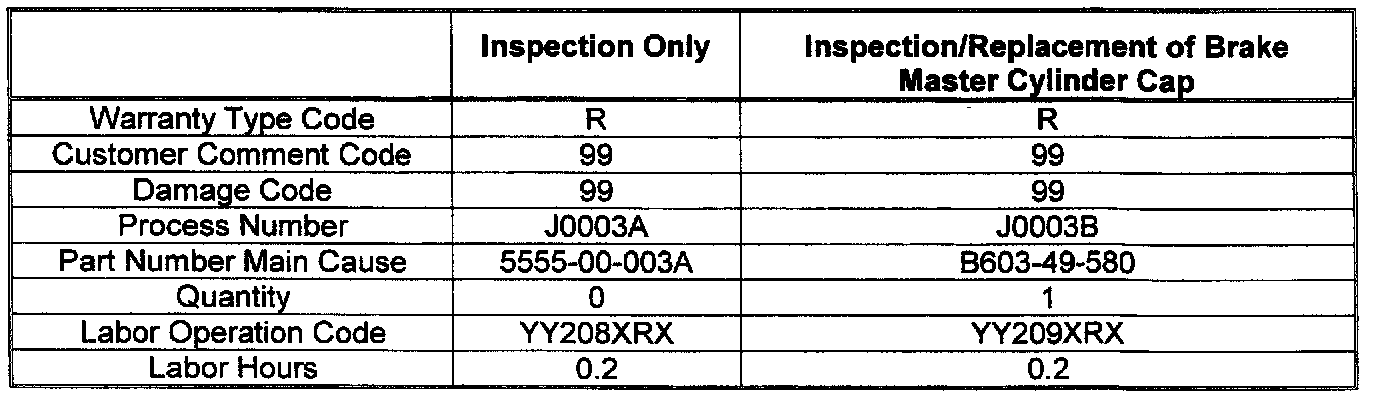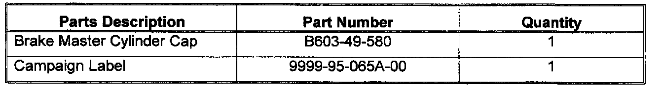 CONDITION OF CONCERNOn the affected vehicles, the brake master cylinder cap was mis-manufactured and can result in low brake pedal during the first brake application after start-up. While multiple applications of the brake pedal may be required to stop the vehicle, this condition will not result in permanent loss of brake performance.