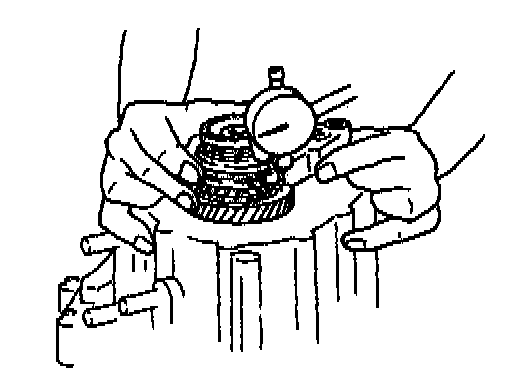 1. Measure the 5th gear thrust clearance with a dial indicator.