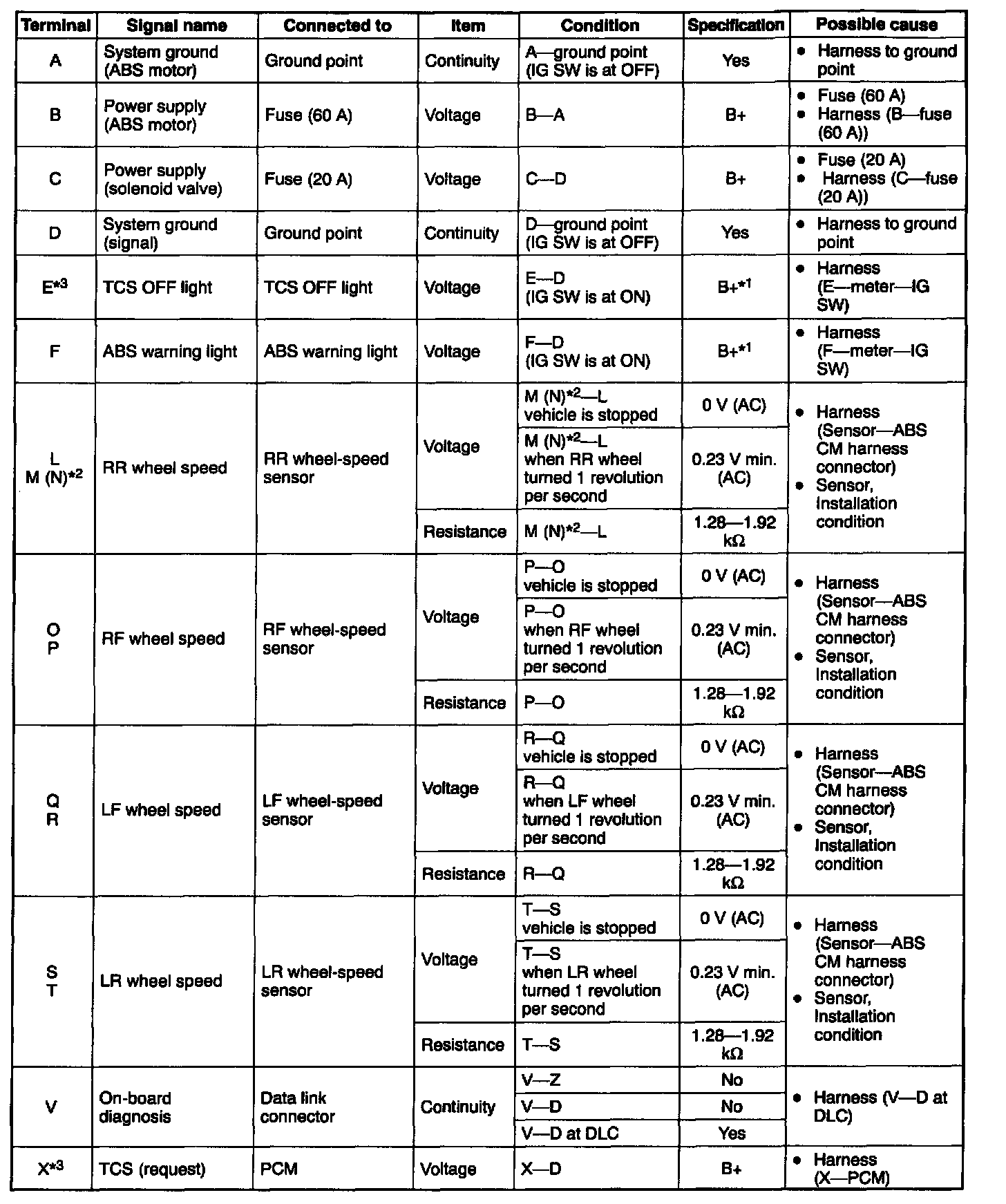 ABS HARNESS AND INPUT SIGNAL INSPECTION1. Disconnect the ABS CM connector with the ignition switch at OFF.