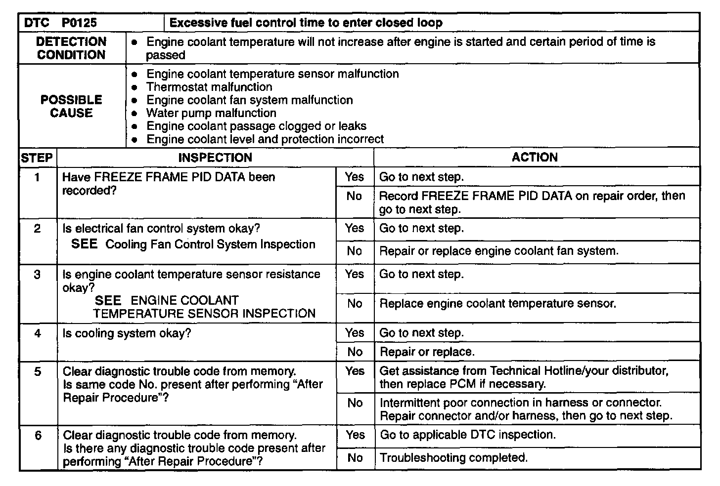 P0125 (Step 1 Thru 6):