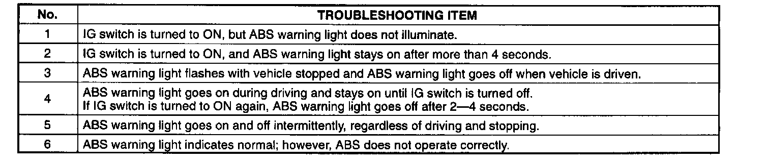 Note: It any symptoms have appeared in the past and are normal at present, a possible cause is a temporarily poor contact in the wiring harness or connector. The ABS CM is normal.