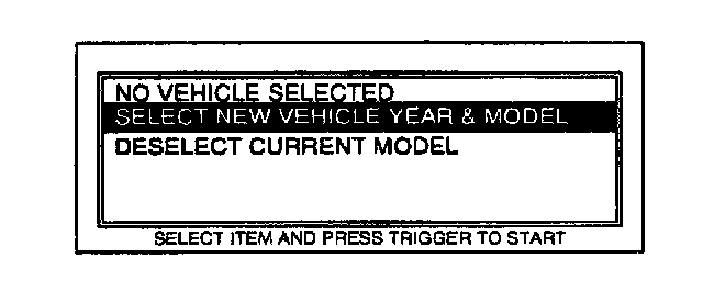 3. Move the cursor to SELECT NEW VEHICLE YEAR & MODEL. Press TRIGGER to enter this selection.