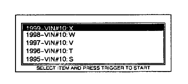 4. Move the cursor to 1999 - VIN # 10:X. Press TRIGGER to enter this selection.