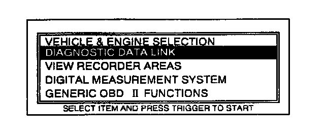 7. Move the cursor to DIAGNOSTIC DATA LINK in the main menu screen. Press TRIGGER to enter this selection.