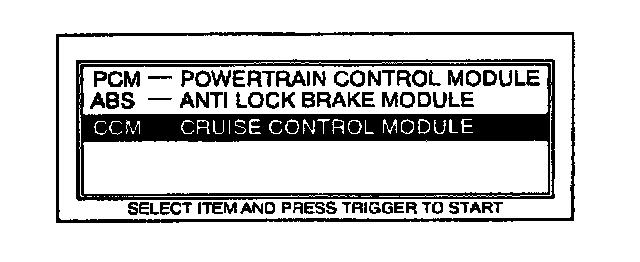 8. Move the cursor to CCM-CRUISE CONTROL MODULE. Press TRIGGER to enter this selection.