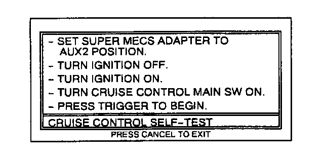 10. Move the cursor to CRUISE CONTROL SELF-TEST. Press TRIGGER to enter this selection.